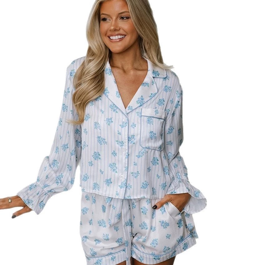 Ruffled-sleeve skin-friendly pajama set – loungewear that can be customized